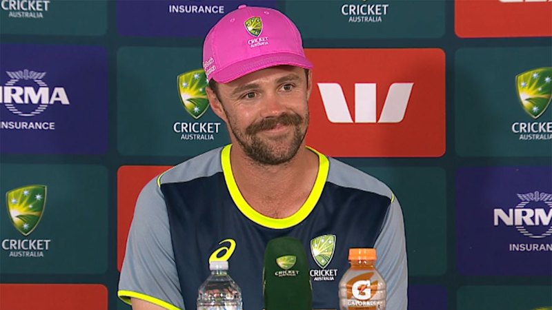Travis Head laughs off a question about failing to reach a double-century in his Test career.
