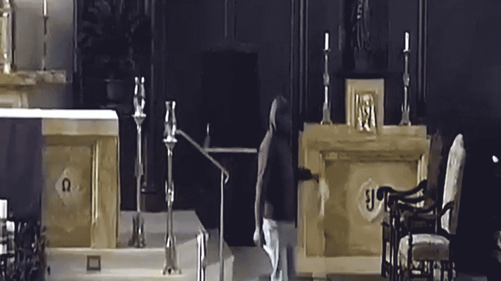 Officials said the suspect fled the scene after seeing the priest enter the worship area.